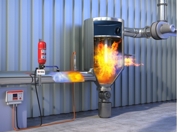 3.HRD化学隔爆器(同HRD化学抑爆器): 特殊设计的HRD隔爆器配备有快速开启阀门和稳定压力下储存的隔爆剂。当爆炸发生时,由控制单元激活,会立即有效地向被保护管道内喷射抑爆剂,瞬间吸收爆炸火焰。化学隔爆只能有效熄灭爆炸火焰,并不能有效阻止爆炸压力。