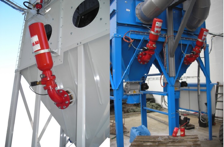 3.HRD抑爆器: 特殊设计的HRD抑爆器配备有快速开启阀门和稳定压力下储存的抑爆剂。当爆炸发生时,由控制单元激活,会立即有效地向被保护设备内喷射抑爆剂,瞬间扑灭初始爆炸。快速反应和有效抑爆是其优势;操作简单,维护方便,是来自用户的点赞。